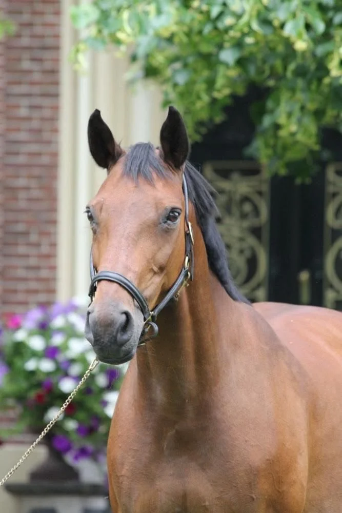Imposante de Muze, a daughter of the Dutch Champion VDL Groep Eureka van 't Roosakker and thus aunt of the top stallions Mumbai v/d Moerhoeve and Opium v/d Moerhoeve. Dam Imposante also produced the BWP stallion Toronto M and is a sister of the 1.60m Jeleena de Muze, among others.