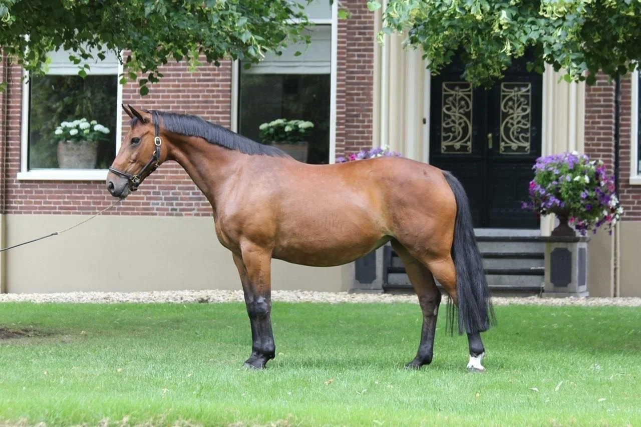 Imposante de Muze, a daughter of the Dutch Champion VDL Groep Eureka van 't Roosakker and thus aunt of the top stallions Mumbai v/d Moerhoeve and Opium v/d Moerhoeve. Dam Imposante also produced the BWP stallion Toronto M and is a sister of the 1.60m Jeleena de Muze, among others.