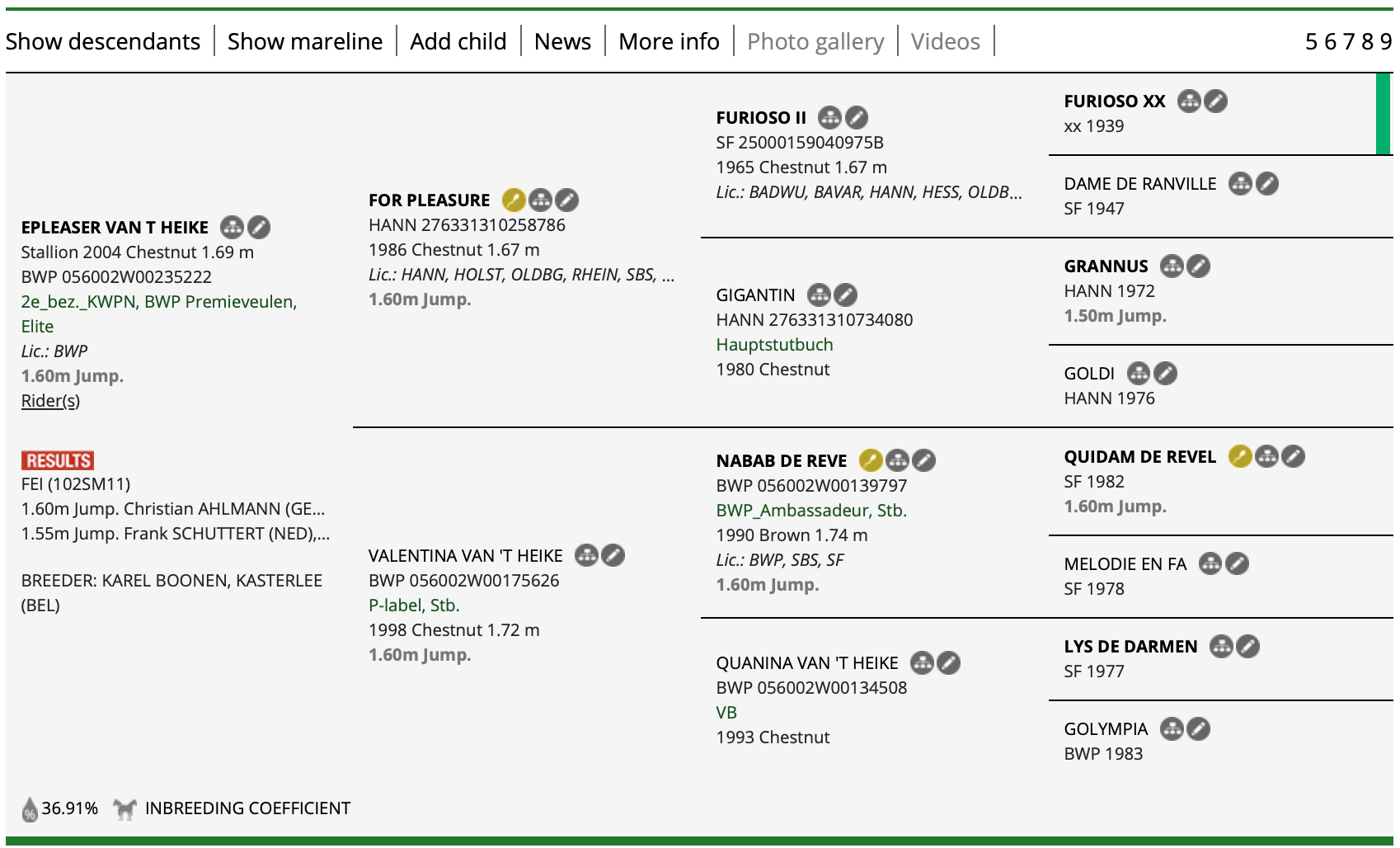 A son of the legendary Olympic stallion For Pleasure, Epleaser van ‘t Heike Z carries an exceptional pedigree, further strengthened by his dam Valentina van ‘t Heike, a 1.60m Grand Prix winner and World Equestrian Games bronze medalist under Jos Lansink. Both parents were among the finest competitors of their era, making Epleaser Z the product of a truly elite bloodline—a winning formula in every sense.